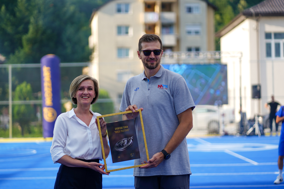 “Cilj ovog projekta je da mladim talentima omogućimo što bolje uslove za dalji razvoj i napredak, u nadi da ćemo jednog dana pratiti njihove košarkaške, fudbalske i rukometne bravure na parketu i u dresovima reprezentacije. Drago nam je što smo ovaj teren obnovili zajedničkim snagama sa Mirzom, poznatim sportistima iz Jablanice, a sve uz podršku lokalne zajednice”, istakla je Selma Salkanović, rukovodilac Direkcije korporativnih poslova Mozzarta koja je uručila zahvalnicu Teletoviću.